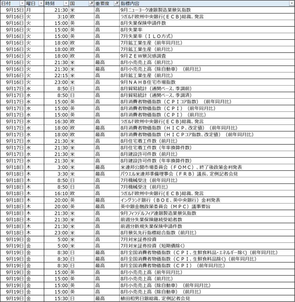 今週は9/16(火)の急変動により自動損切となりました。