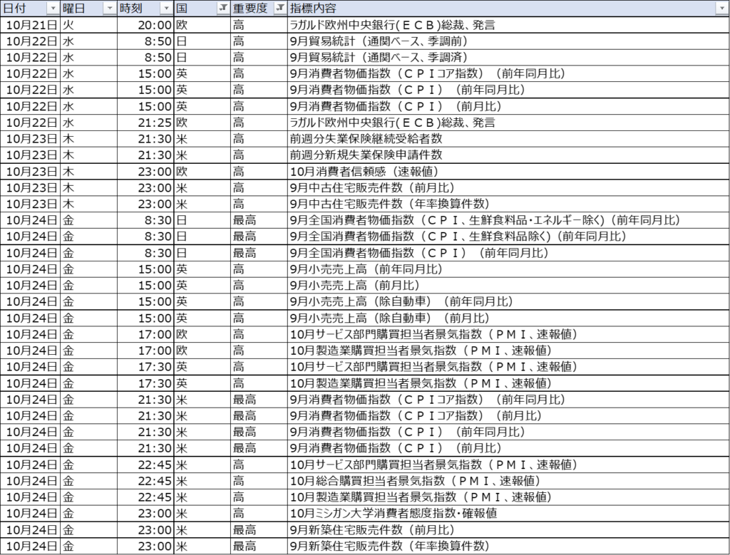 今週の停止対象経済指標