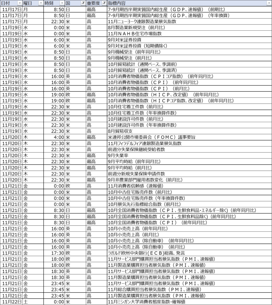 ※これまでの参照元サイトからのデータ取得が困難となったため、1/6週より別サイトの経済指標を参照しております。この変更に伴い、サイト間の重要度基準が異なるために停止対象となる指標が増加しております。YOSHIMUNEの経済指標停止機能をご利用のユーザさんにおかれましては、適宜マニュアルでの停止指標の操作をお願い致します。