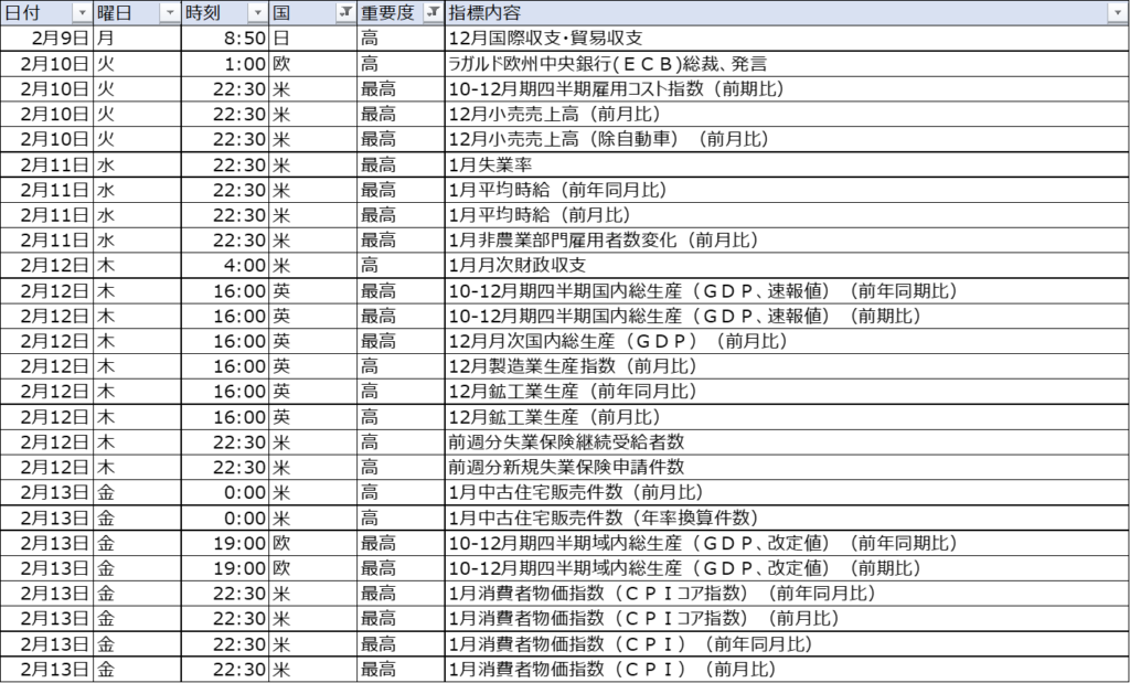 今週、推奨設定で停止対象となった経済指標は以下の通りです。