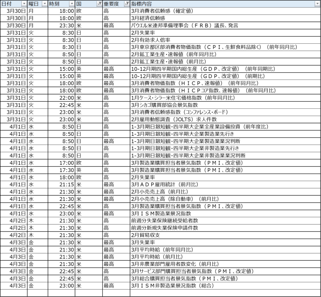 今週は3/31(火)に1ロット以上のポジションを保持する時間帯がありましたが、無事に利確しプラス収支となっています。